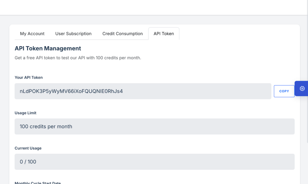 Once it opens, you can find the API Token. Then, copy your token from your account to connect to your website to the HS Match Code API. HS Match Code is available for free users with a limit of 100 credits per month.